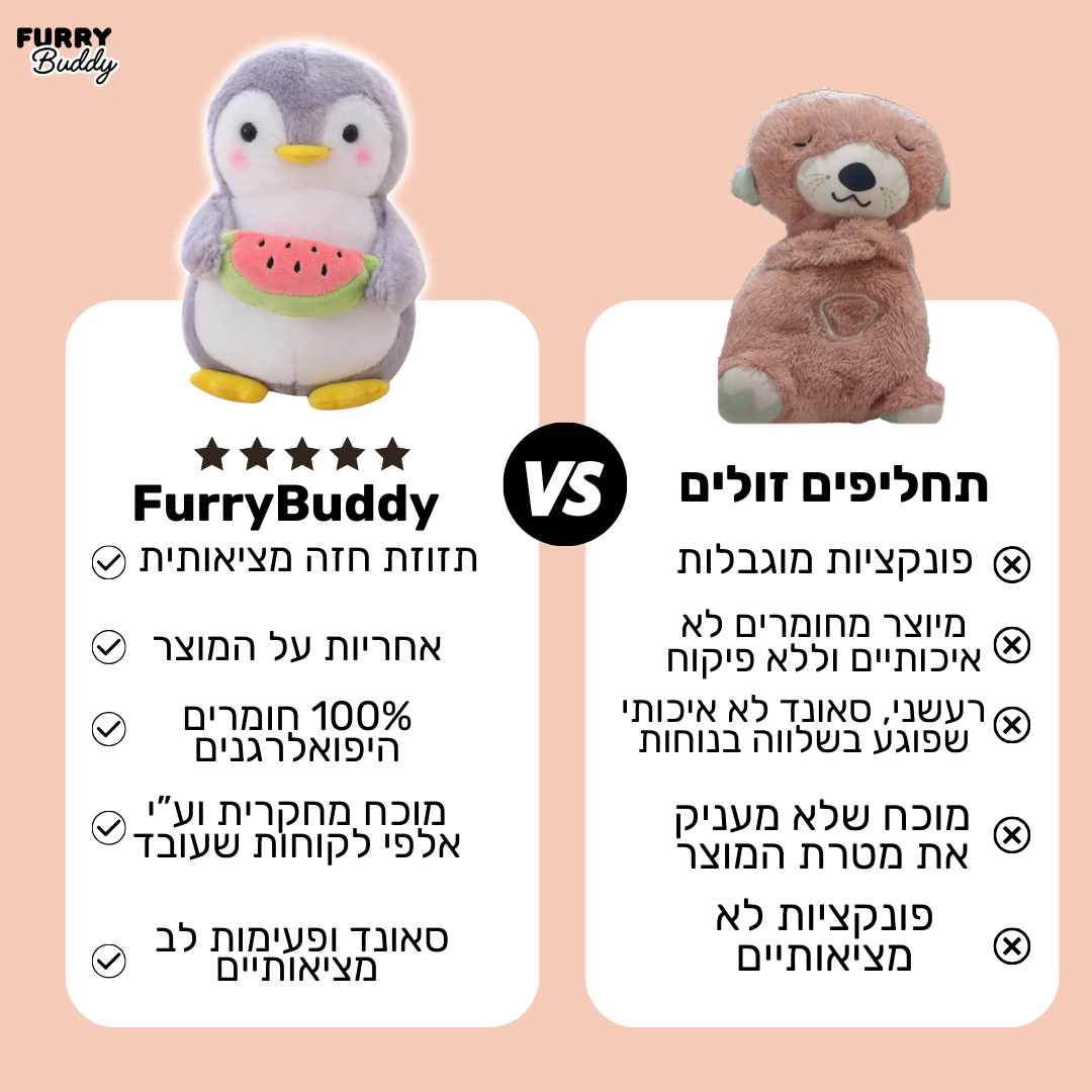 הימנעו מהזיופים הזולים ותחוו את ההבדל עם הנוחות והתמיכה העליונה של ™FurryBuddy המקל בלחץ וסטרס, שיעזרו לכם להירדם לשינה עמוקה ונינוחה.
